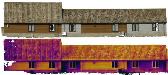 In cases where photogrammetry techniques could not be applied, laser scanning can be employed to generate the surface model, and both optical and thermal images can be applied to that surface so long as there are a handful of features that can be matched between each image and the modelled surface.