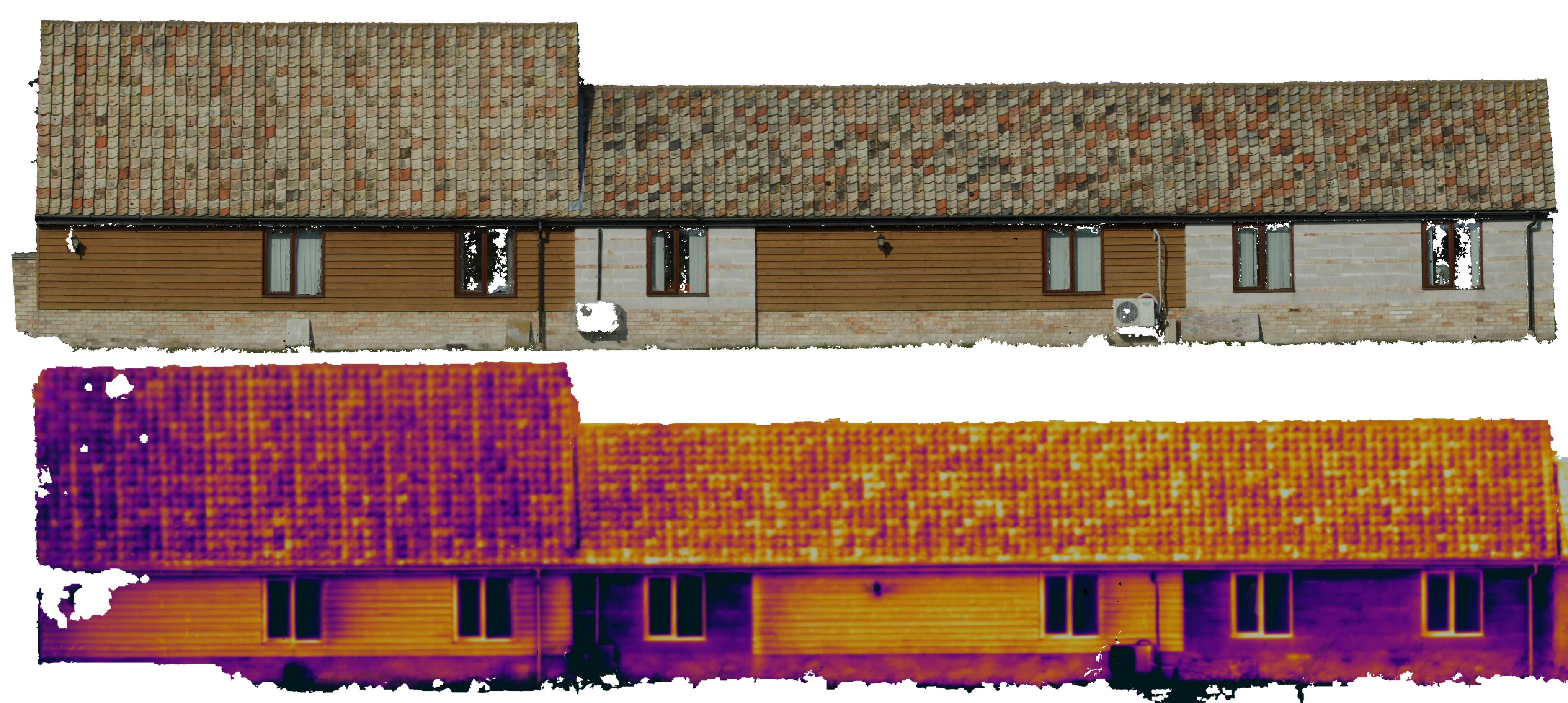 In cases where photogrammetry techniques could not be applied, laser scanning can be employed to generate the surface model, and both optical and thermal images can be applied to that surface so long as there are a handful of features that can be matched between each image and the modelled surface.